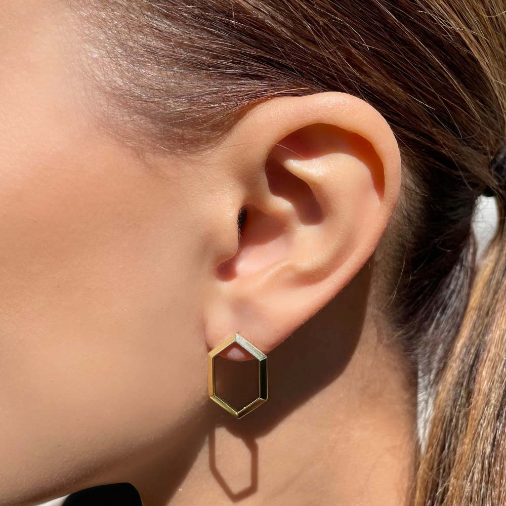 Delightful Hexagon – 18K Yellow Gold Geometric Earrings